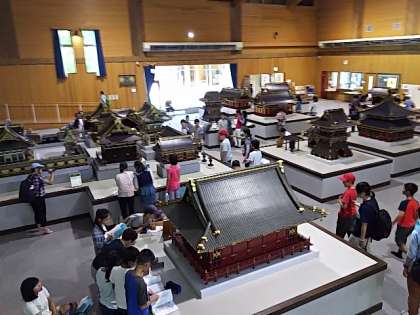 ここには午後訪れる日光東照宮の模型が展示されています。しおりにメモしながら見学をしています。