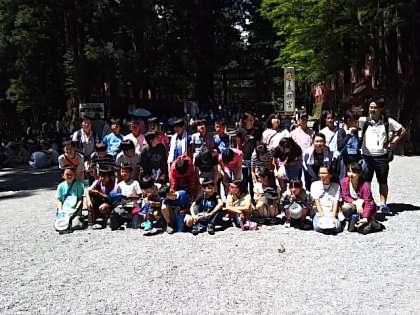 いよいよ日光東照宮の見学です。日曜日ということもあり、とてもにぎわっています。入場前に学級ごとに集合写真を撮りました。