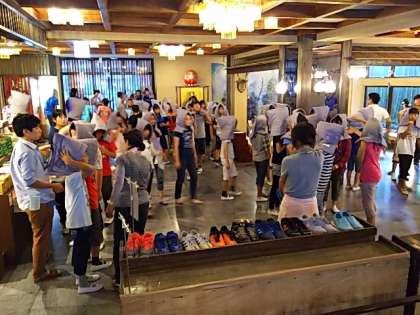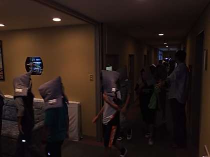 開園式を終え、荷物を持って入室しました。その後、地震発生を想定した避難訓練を行いました。防災頭巾をかぶり、避難経路を確認し、玄関に集合。人員確認まで静かに落ち着いて行動できました。続いて生活班の班長会。連絡事項を確認しました。