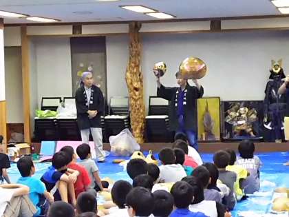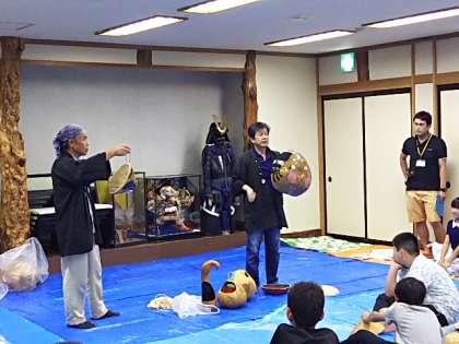 栃木県産の夕顔の実を使った「ふくべ細工体験」に挑戦しています。講師から、夕顔の生産の歴史や食材として親しまれているかんぴょうなどにちいて教えていただきました。そしてふくべ細工の制作方法について学びました。