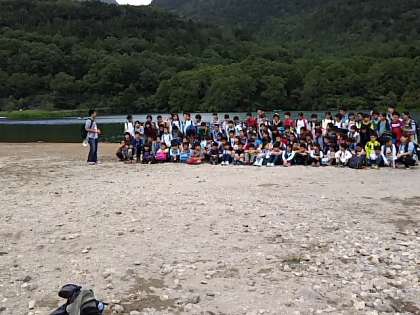 学年写真を撮りました。頑張って歩き、達成感が表情に表れています。