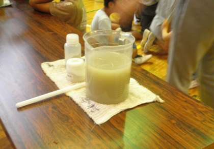 1,きれいな「水をにごりの素」を入れてきたなくします。