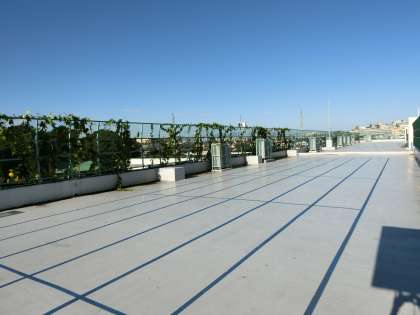 学校の上空には青空が広がり、屋上まで伸びてきたヘチマも元気よく大きな実を結んでいます。また、西方には富士山がくっきりと、その姿を現していました。