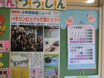 水泳教室を終えて、たくさんの1・2年生が、図書館に来ました、図書の返却と貸し出し、調べ学習や読書感想文の作成など、思い思いに過ごしています。