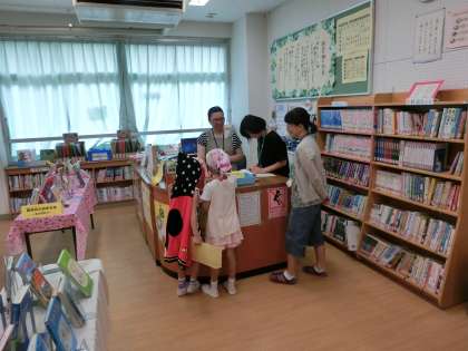 保護者の図書館ボランティアのみなさんの協力を得ながら、図書館司書と一緒に子どもたちの読書活動を支援しています。