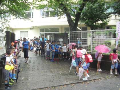 今日は烏山地域あいさつキャンペーン3日目でした。朝は雨が降っている中、正門で6年生、東門で4年生があいさつ運動に取り組みました。
