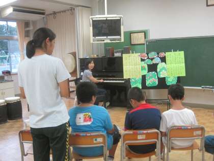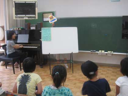 5・6時間目は、講師の山田先生と一緒に音楽の学習をしました。ペープサートを持って歌ったり、曲に合わせて楽器を奏でたりと楽しく活動することができました。