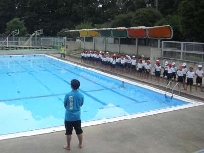 気温、水温が2年生にとっては厳しく、プール水泳学習は実施しませんでしたが体育着を着てプールサイドで行いました。