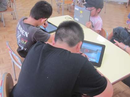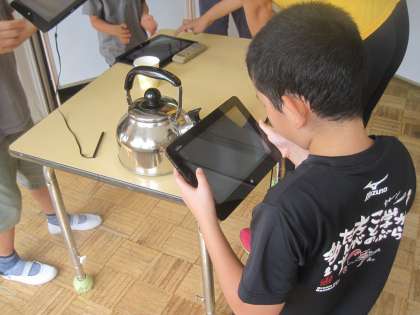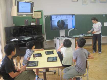 タブレット端末を使って、「スリーヒントクイズ」作りをしています。今日は、クイズのヒントになるような写真をたくさん撮る学習をしました。学習道具や日用品等、身近にある素材を選び、様々な向きから写真を撮ってみました。「どの部分を写そうかな。」「もっと大きく写そうかな。」等々、考えながら工夫していました。たくさん撮った写真の中から、3枚を選びクイズを作って、発表し合う予定です。