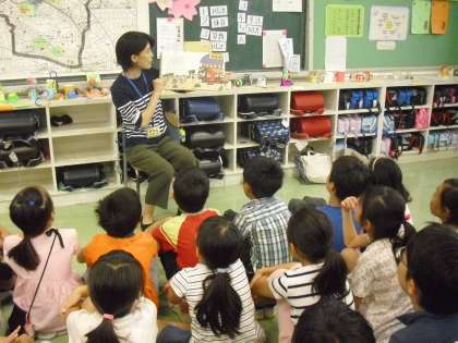 今朝は朝の活動の時間に、1組、2組で保護者の方による読み聞かせの会が開かれました。