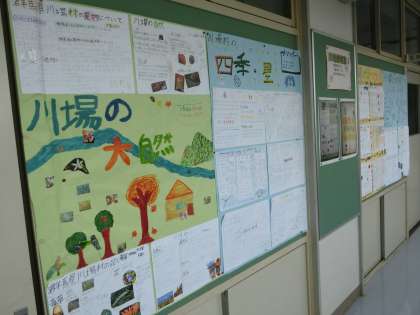 *写真は“川場探検隊”で調べたことをまとめた掲示物です。各教室及び職員室前の掲示コーナーに掲示してあります。
