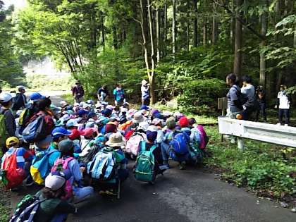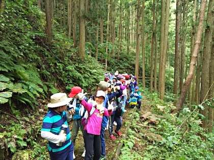 いよいよ21世紀の森ハイキングコース入口です。入山の儀式をし、緑いっぱいの自然の中に入りました。