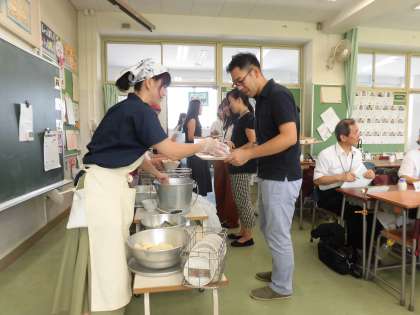 講演の後は、給食試食会となりました。子どもの頃を思い出しながら、和やかなひとときとなりました。