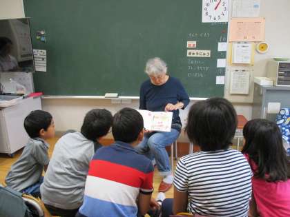 1・2時間目に、お話会がありました。今月も、牧先生に楽しいお話を紹介していただきました。全学年共通で「かばくん」「なにからできているでしょーか?」「ひとまねこざる」の3冊、6年生は「おさらをあらわなかったおじさん」「たからさがし」を加えて5冊の本を読んでいただきました。少し長いお話もありましたが、とてもよく聞いていました。どの子もお話の世界を楽しむことができました。