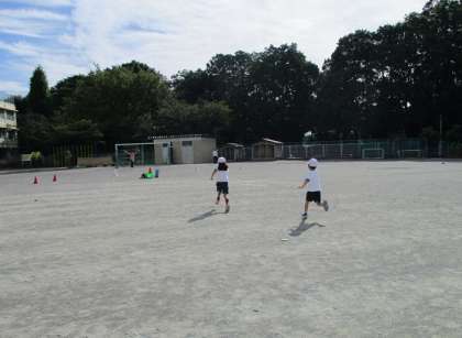 1時間目に校庭で体育をしました。まずは、準備運動で体をほぐしました。次に、連合運動会での競技をイメージして「思い切り走る!」をめあてに、「かけっこ」の練習をしました。校庭での体育は、久しぶりでしたが、気持ちよく晴れた空の下、どの子も力いっぱい走ることができました。連合運動会まで、あと1週間です。一人ひとりの気持ちも高まってきました。