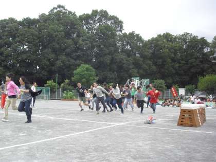 体育の日である今日、烏山小学校の校庭で、「第66回 給田町会 大運動会」が開かれています。運動日和の気候の中、大人も子どもも和気あいあいとした雰囲気で楽しんでいます。
