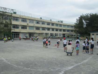 本日、1年生と長縄跳びをしました。跳び方の手本を見せたり、縄を回したりして一緒に楽しく活動しました。