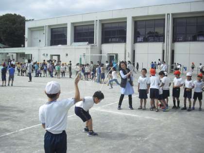 朝の「ジャンピングタイム」の時間や、中休みの時間に、長縄跳びに取り組んでいます。子どもたちは学級ごとにめあてをもち、頑張っていました。
