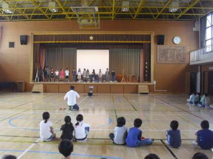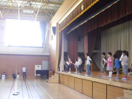 明日13日の児童集会は、キッズフェスティバルの活動内容をお知らせする集会です。今日の中休みに、出演する子どもたちが体育館でリハーサルを行いました。