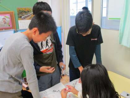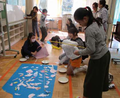 今日は、楽しみにしていたキッズフェスティバルでした。つくし学級は、「世田谷水族館」を開きました。様々な種類の魚の展示・動くお魚体験・魚釣りゲームと楽しいコーナーを準備してお客様を迎えました。受付でスタンプを押す係・動くお魚体験の案内係・魚釣りゲーム係・魚釣りのタイマー係・景品係と自分が担当した係の仕事を頑張っていました。「お客さんがたくさん来てくれた〜!」「嬉しい!でも、忙しくて大変だぁ〜。」「おみやげの景品、足りるかな?」と子どもたちの声が聞こえてきました。前半・後半に分かれて、交代で水族館当番と他学年のお店見学を楽しむことができました。「忙しくて疲れたけれど、なんだかいい気分がする。」と片付けを終えた後で感想を伝えてくれた子がいました。