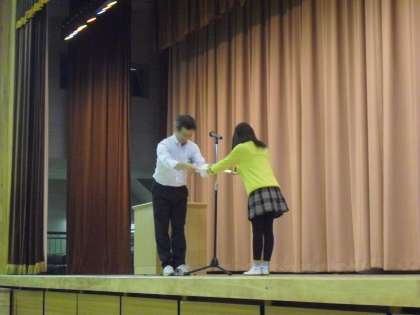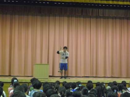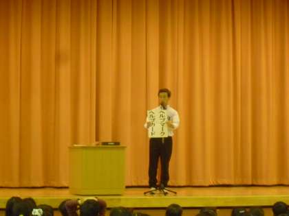 続いて、ダンスコンクール団体の部で金賞を受賞した子への表彰がありました。学校の仲間の活躍を讃え、全校で大きな拍手を送りました。