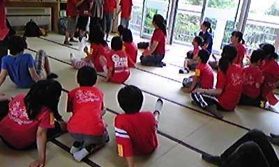4年生は、開校式での始めの言葉のリハーサル中をしています。