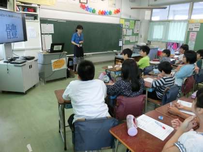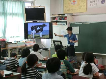 毎日の給食で必ず出される牛乳。この牛乳の中に含まれるカルシウムが成長期の子どもたちにとってどれだけ大切な栄養であるのかを、クイズ等を交えながら楽しく学びました。
