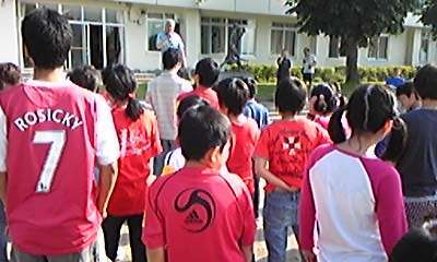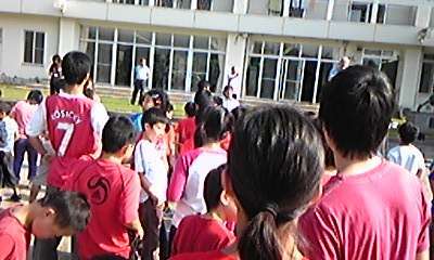 おはようございます。河口湖二日目の朝です、朝会の風景とラジオ体操です。