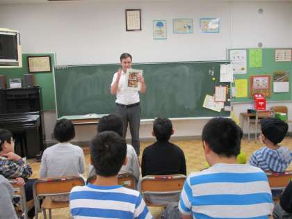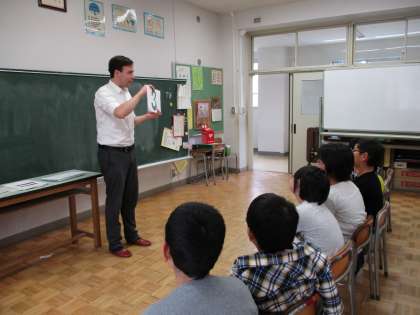 最後に先生への質問タイムがあり、「折り紙をやったことがありますか?」「あやとりをしっていますか?」と日本の遊びに関する質問をしました。「折り紙で、紙飛行機を折れます。あやとりは、やったことがないです。」とのお答えでした。そこで、あやとりが得意な子が、先生の手をお借りして「手首ぬき」という手品あやとりの技を披露しました。先生からも友達からも大きな拍手が起こりました。