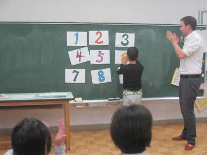 2時間目に英語活動がありました。講師の先生から、「1・2・3…」の数の言い表し方を教えてもらいました。数字カードを使ったり、じゃんけんをしたり、ゲーム形式で、楽しく学ぶことができました。