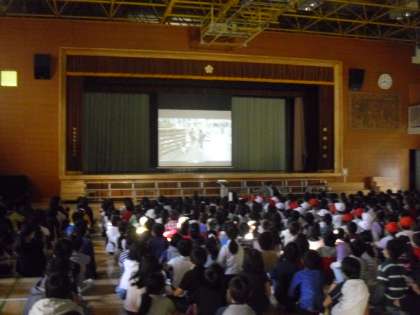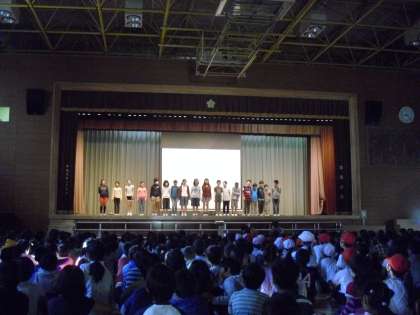 昨日に引き続き、今朝も児童集会で委員会活動の取組の内容を紹介しました。今日は放送委員会、保健・給食委員会、運動委員会が発表しました。