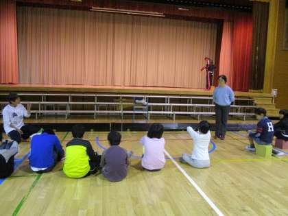 3時間目は、生活単元学習「学芸会に向けて」を体育館で行いました。舞台に立ち、動きを付けながらセリフの練習をしました。練習の後、よかった所ともう少し頑張るとよくなる所をみんなで確認し合いました。