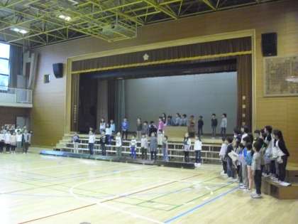 今日は「歌うときの歌詞と場所を確かめよう。」をめあてにして、3曲の劇中歌を歌いました。
