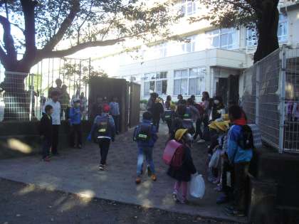 11/4 縦割り班でのあいさつ運動に取り組んでいます。