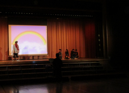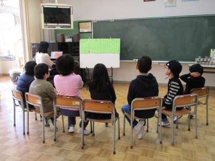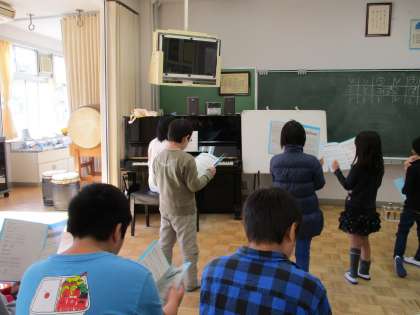 2時間目に体育館で学芸会に向けての練習をしました。本番のつもりで、一人ひとりが自分の役を意識して、取り組みました。「緊張する。」と言いながらも演技は少しずつ上手になってきています。3・4時間目は、音楽をしました。学芸会で歌う「にじいろのとり」「トライ・エヴリシング」の2曲を全員で練習しました。