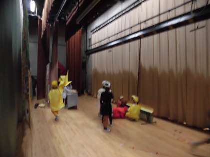 開演中も、幕の後ろで子どもたちが小道具を受け渡したり大道具を運んだりと、大忙しでした。