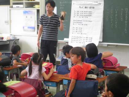 1の2では、先生はお猿の人形を持ってお話をしていました。