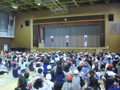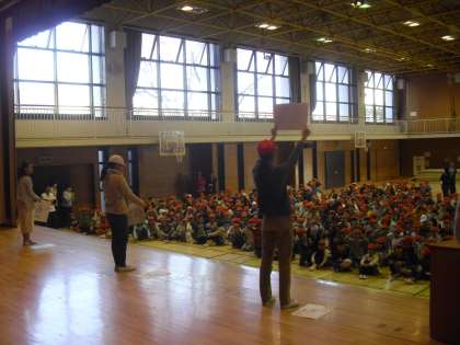 今日は体育館で、集会委員会による「学芸会クイズ集会」が開かれました。