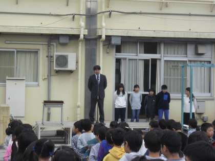 先週月曜日が振替休業日だったこともあり、今日の全校朝会で校長先生から学芸会での頑張りを褒めてもらった子どもたちは、自分たちが頑張ったことを思い起こしながらお話を聞いていました。