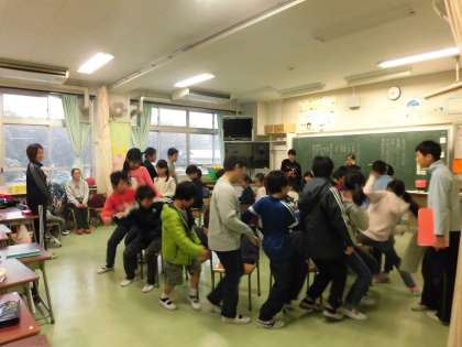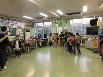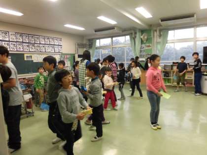今朝は縦割り班遊びでした。11月なのに珍しく雪が降り、どこの班も教室の中での遊びでした。ジャンケン列車や友達つくろうゲームなど、楽しみました。