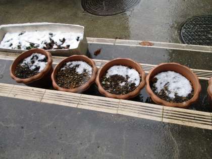 今日は、11月にしては、珍しくフワフワと雪の舞う朝となりました。子どもたちは「寒い〜。」と言いながらも花壇や植木鉢に積もる雪を見て嬉しそうでした。