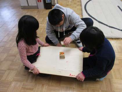 1時間目、学習室でチーム対抗による積木ゲームとボールパスを行いました。「チームで協力すること」をめあてに競い合いました。6時間目には、水栽培で育て始めた「ヒヤシンス」の観察をしました。根が容器いっぱいに伸び、生長している様子が分かりました。これから花が咲いていくのが楽しみです。