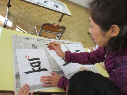 5・6時間目に書写をしました。1月に予定している「書き初め」の練習として、1・2年生は、硬筆、4年生以上は、毛筆に取り組みました。4年生は「空」、6年生は「春」を練習しました。5年生は「豊」という字の脚の部分「豆」という字を書いてみました。一筆ずつよく見て、丁寧に書くことができました。