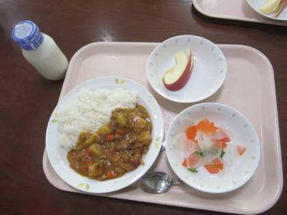 献立は、みんなが大好きなカレーライス。もりもりたくさん食べました。