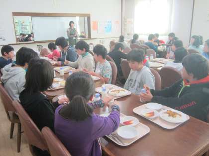 栄養士さんからは、成長期に必要な栄養についてと、食器の並べ方についてお話していただきました。バランスのよい食事を心がけ、たくましく健やかに成長してほしいです。