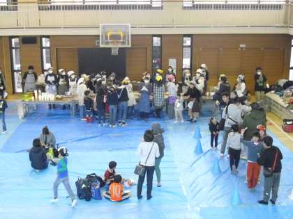 おもちのチケットを持って並ぶお客さんも行列を作っておもちをもらいました。つきたてのおもちの味は格別なようで、「おいしい。」と頬張る子どもたちの表情は幸せに満ちていました。