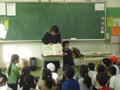 今日の朝、1組・2組・3組で保護者の方による読み聞かせの会を開いていただきました。