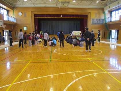 今日は、祖師谷小・明正小・芦花小・烏山小のAブロック4校の特別支援学級児童が、祖師谷小学校の体育館に集まり、交流会をしました。各校で、プログラムを分担して準備し、楽しいひとときを過ごしながら、交流を深めることができました。烏山小は「ボール送りゲーム」の担当でした。6年生が代表でルールを説明し、やり方の見本を示してくれました。また、6年生は、今回が最後の4校交流会となるため、プログラムの最後に「6年生のことば」として、進学に向けての思いを発表することもできました。