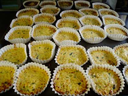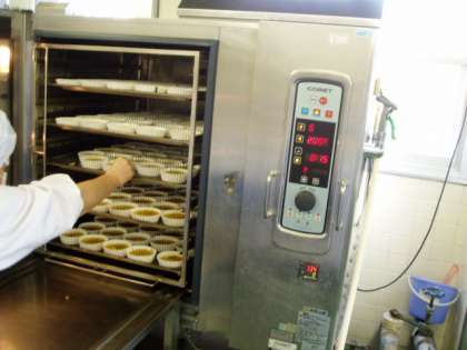 千草卵焼きとは、たくさんの種類の具を卵に混ぜて焼くところから千草という名前がつきました。低・中・高と卵焼きの量を変えカップにいれてオーブンで焼いています。