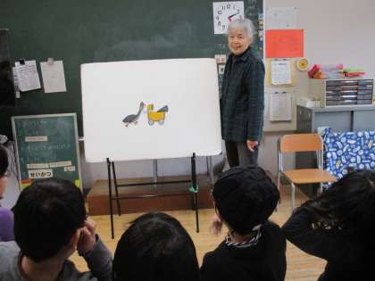 1・2時間目にお話会がありました。今日は、全学年共通で「ゆうびんやのくまさん」を1冊、6年生は「ちいさいしょうぼうじどうしゃ」「ぐりとぐらのおきゃくさま」を加えて3冊の絵本を読んでいただきました。さらに、パネルシアターを使って「ぶたたぬききつねねこ」のしりとりを教えていただき、パネルを見ながら、みんなで言葉を考え、しりとりを楽しみました。